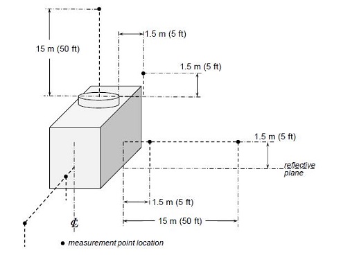 确定大型冷却塔对远场声压级的贡献应通过进行近场声压级测量,然后计算主要声源(风扇出口,进气口等)声功率级来完成。因此,冷却塔的声级保证应为近场声压级。