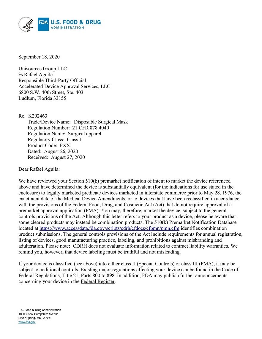 2020.9.19号第三方一早发来邮件,好消息,您的外科口罩顺利通过FDA官方审核: