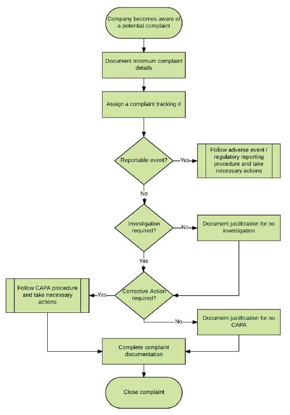 下面的图表概述了医疗器械公司在收到投诉时应经历的阶段: