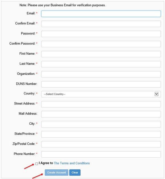 要注册,请填写所需的信息。勾选方框以同意条款及条件,然后单击“创建帐户”。在提交您的信息后不久,您应该会收到duns的电子邮件,其中包含您的登录信息。