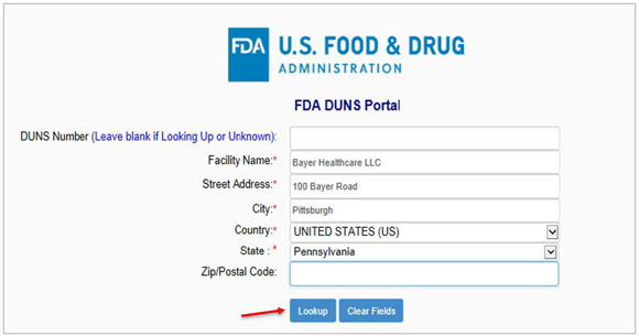 如需查询DUNS号码,请填写所需信息,然后单击“查找”。一定要注意,必须填写所有设施名称和地址字段。如果你有DUNS号码,你可以把它包含在搜索中,“查找”按钮将被“验证”按钮取代。